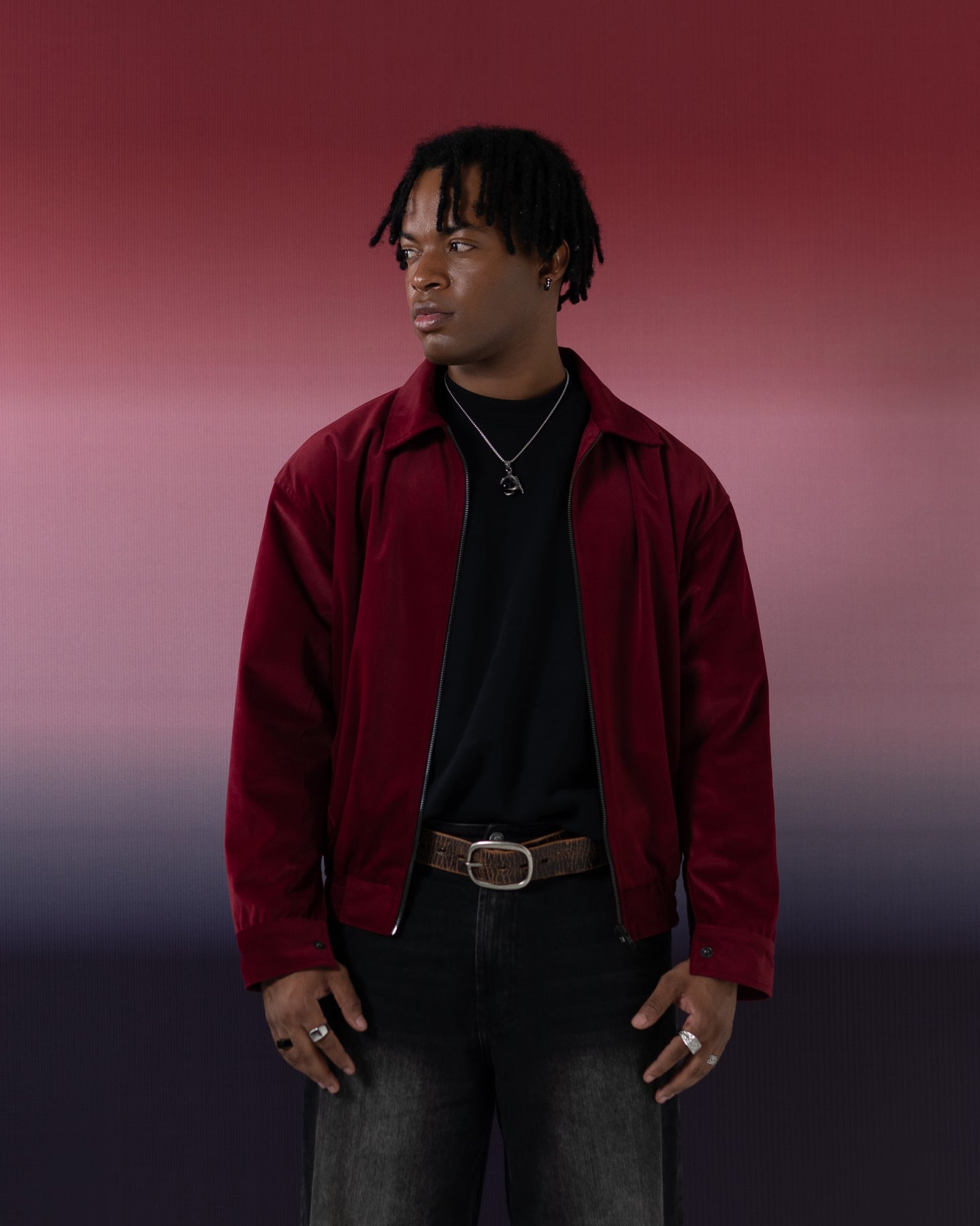 Crafted in a matte velvet fabric that offers a soft, muted finish—perfect for adding warmth and refinement to winter layering.