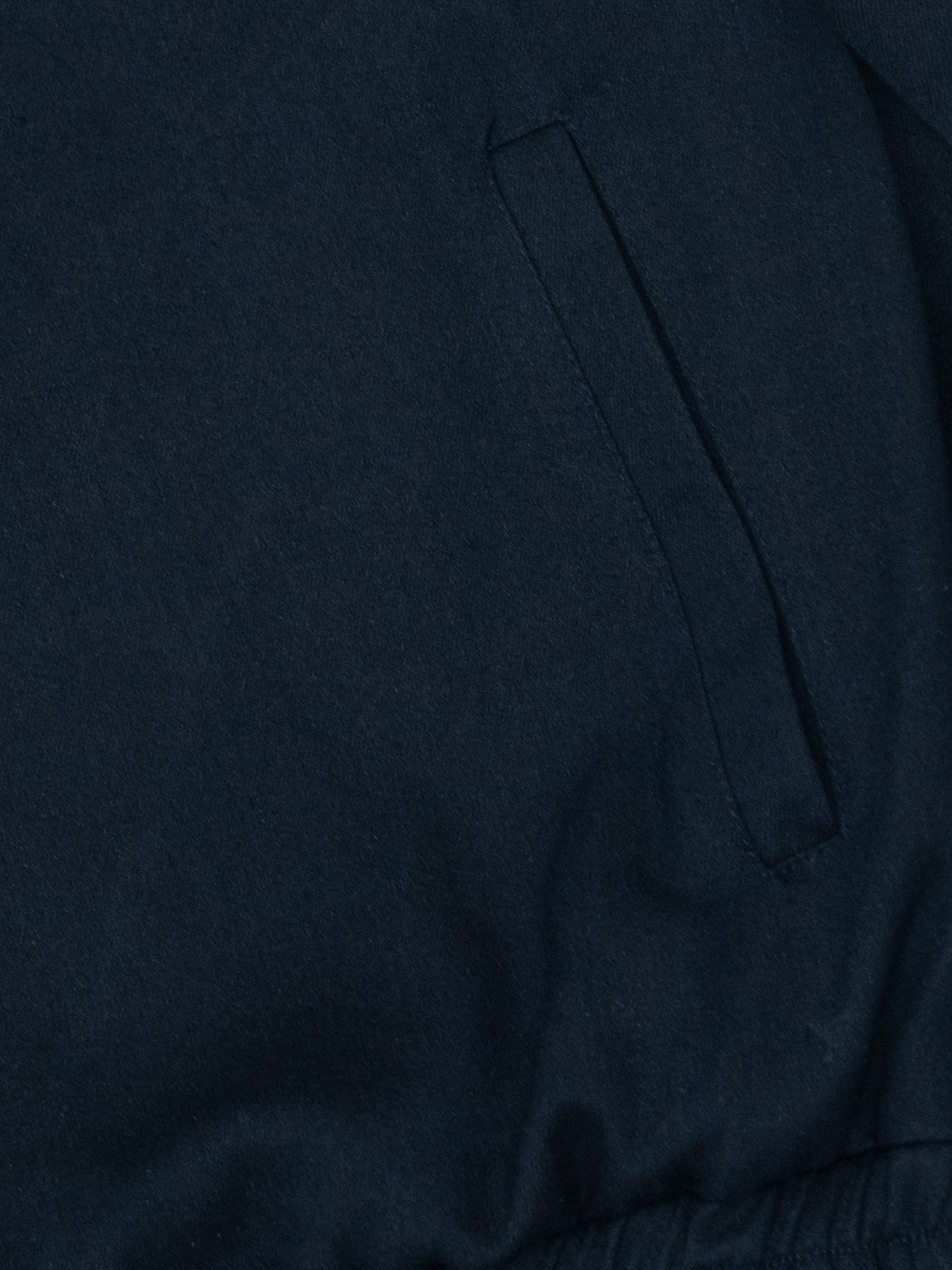 Constructed from knitted twill denim, offering a structured feel with a soft hand—ideal for cool-weather layering.